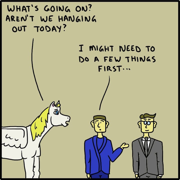 But if things get too serious, so serious that they start to fade the magic, that’s a red flag. For me, I realized the new ideas and ambitions popping into my brain all of a sudden weren’t just distractions—they were procrastination.